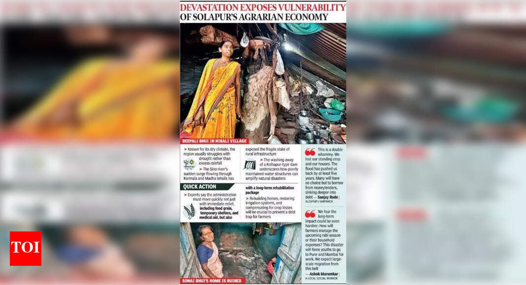मंदार देशपांडे यांचे पिक्स कर्माला, सोलापूर: कर्माला तहसीलमधील तारातगाव गावातील शिवलीला प्राचंद काळे, सीना नदीने उध्वस्त झालेल्या तिच्या घराचे दृश्य फारच कमी करू शकले नाही.